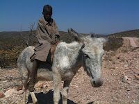 Yesterday I arrived to a farm called Aussicht in Kaokoland, north west Namibia, 70 km south of Opuwo. For last 5 kms I needed 30 minutes as the road is so bad that I couldn't drive in average more than 10 km/h. It was also very steep. On the way I saw all these funny signs as 'No speed limit' and ‘The road will be tared next week’. :) The farm is on top of the hill / mountains from where I had a nice view of surrounding hills. The owner lives here for last 26 years but he turned the farm into tourist farm only 10 years ago. It is self-catering but you can book a dinner with owner even if you are just camping. Otherwise meals are included in price if you stay in the rooms. I was camping.